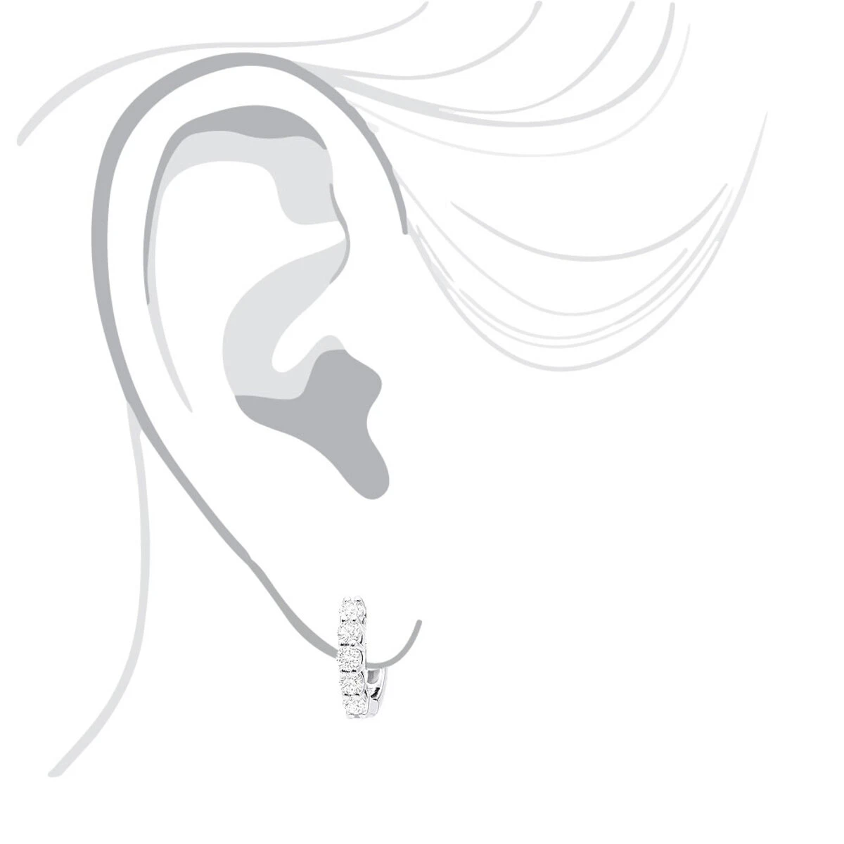 1/2 Inch Classic Huggie Hoop Earrings 14K White Gold With Round Diamonds 1 Carat