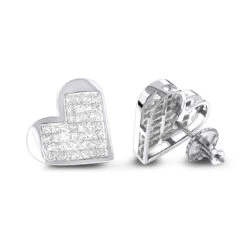 These 1 Carat Pave Diamond Stud Earrings in 10K gold feature a unique 3D cube shape paved with a full carat of intricately set genuine diamonds in 10k gold frame with a highly polished gold finish. These diamond stud earrings for men and women are unisex about 10mm wide, feature secure screw back posts and are available in 10K white, yellow and rose gold.
