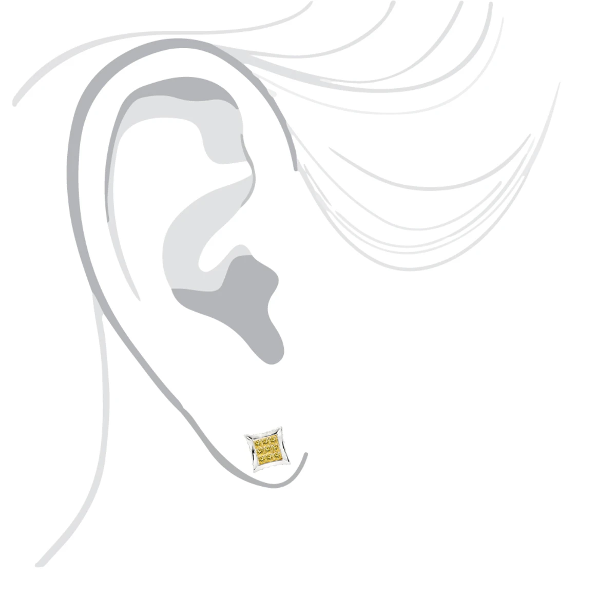 These fantastic 10K Gold Canary Yellow Diamond Stud Earrings from our fancy color diamond jewelry collection weigh approximately 2 grams and showcase 0.6 carat of sparkling invisibly set, princess cut canary diamonds in the center and accentuating white round diamonds on the sides. Featuring an intricate design and a highly polished gold finish, these versatile diamond stud earrings are available in 10K white, yellow and rose gold.