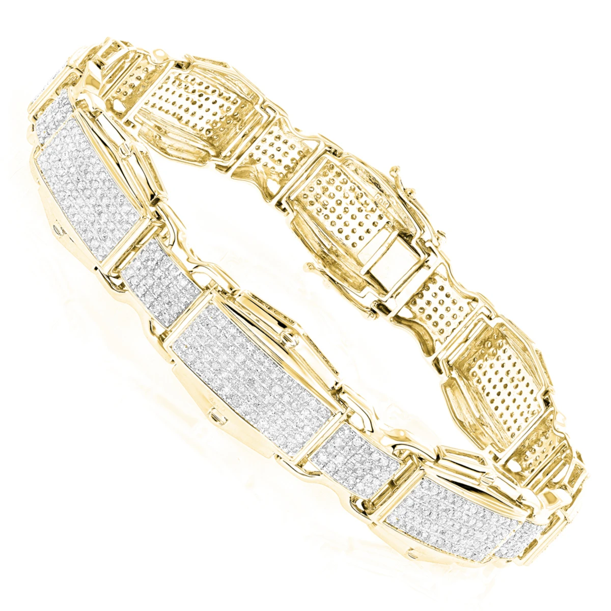 This Gold Diamond Bracelet for Men available in 10K White gold, Yellow gold or Rose gold weighs approximately 20 grams and showcases 3.48 carats of genuine diamonds. Featuring a unique design and a highly polished gold finish, this men’s diamond bracelet will surely make you stand out from the crowd and also makes a great gift.