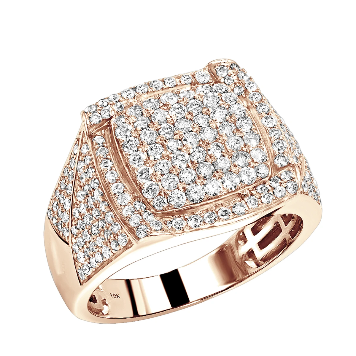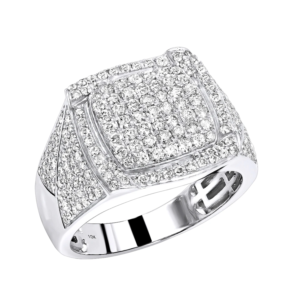 10K White Gold Diamond Ring For Men 1.75ct Pinky Ring By Luxurman