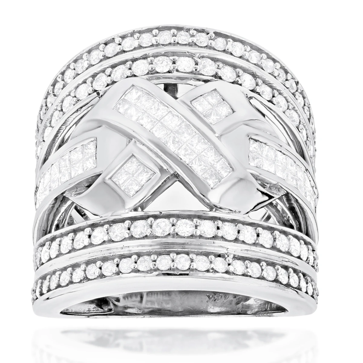 14K White Gold Criss Cross Diamond Ring 2.20ct