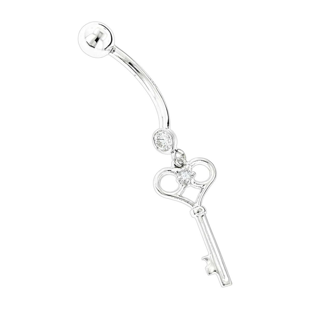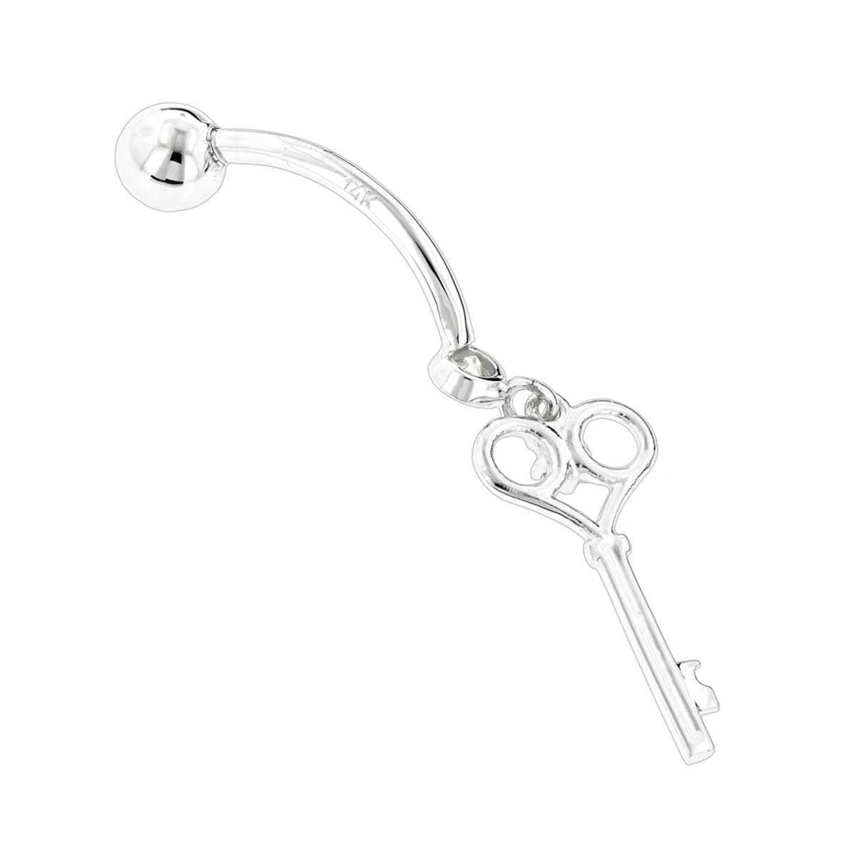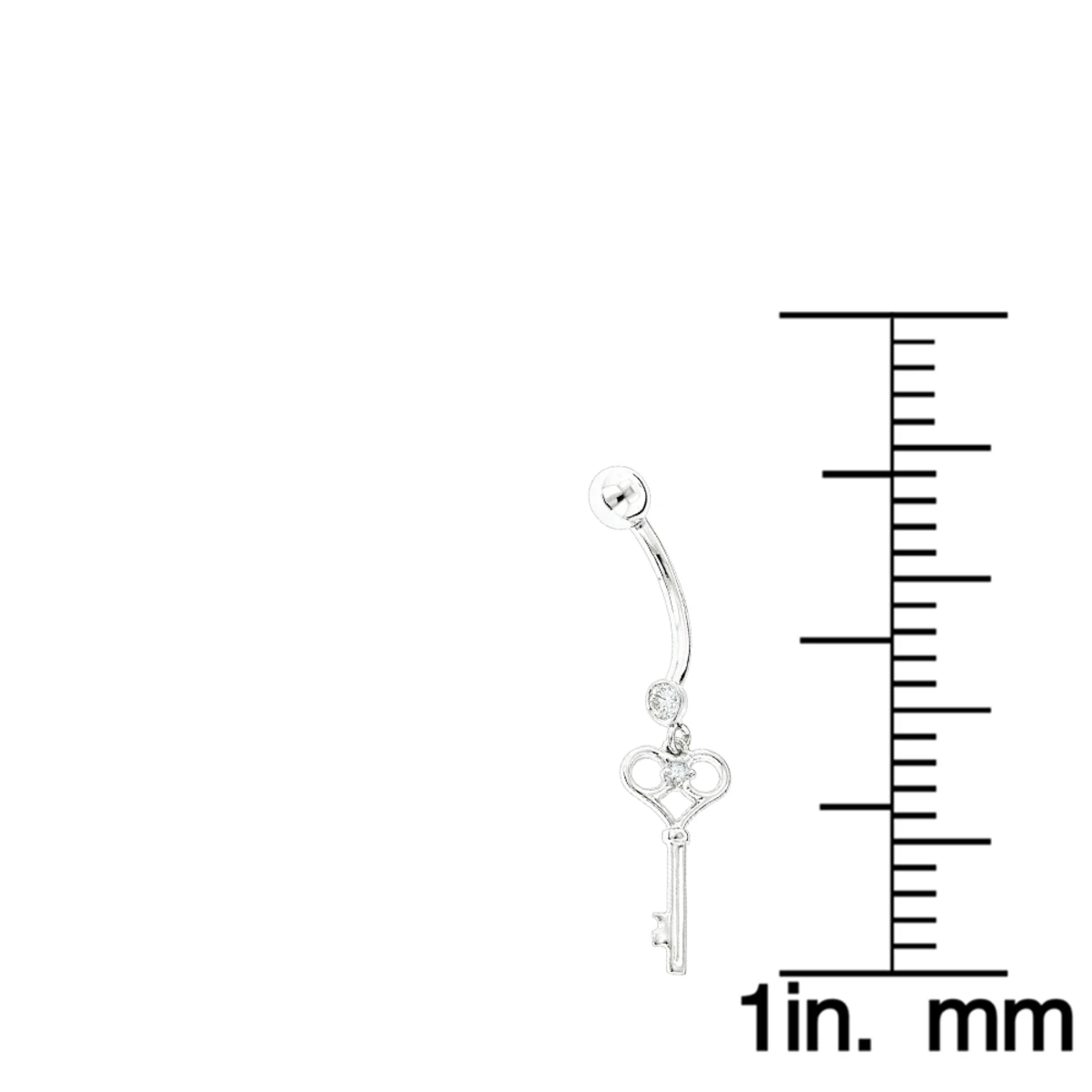 14K White Gold Dangling Key Diamond Belly Button Ring .14ct