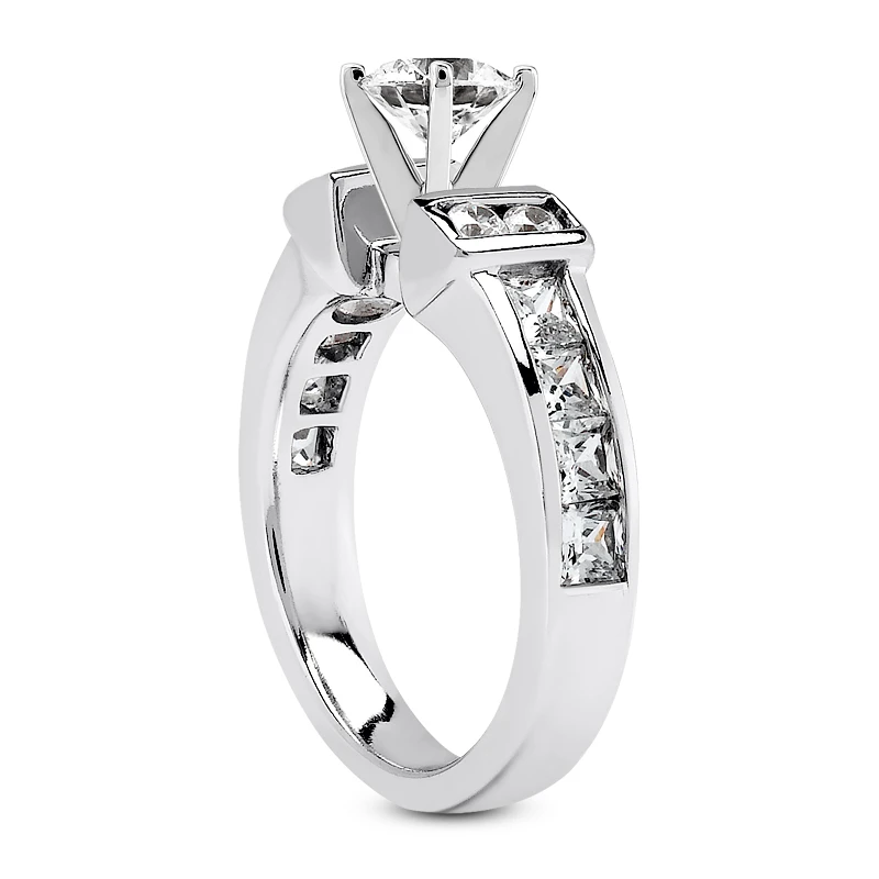 This 14K Gold Designer Diamond Engagement Ring showcases a 0.50 carat round diamond in the center and 0.78 carats of round & princess cut diamonds on the sides for a total of 1.28 carats of dazzling diamonds and is available in Platinum, 18k or 14k yellow, rose, white gold, various sizes, and can be customized with any color and quality diamonds. Center diamond can be from 0.50ct to 5ct (gold weight and number of stones may vary). Please note: it will take us 3-5 business days to make this ring for you so please plan accordingly. Please contact us at 212-398-3123 if your size or desired option is not listed.