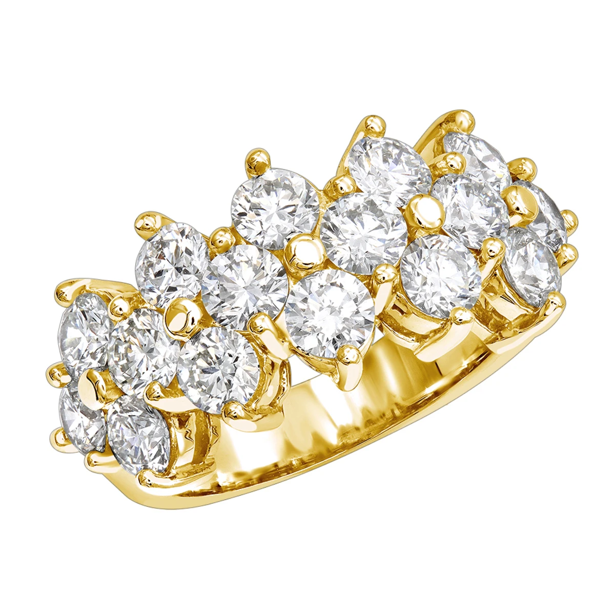 This exquisite 14K Gold Diamond Anniversary Wedding Ring for Women has an intensely feminine style and showcases 3.2 carats of sparkling VS quality round brilliant diamonds. Each diamond is professionally attached with secure prong holding the precious diamonds on the gold band. An intricate design makes these 16 round diamonds resemble a cluster of crystalized berries on a golden branch. This fabulous women’s diamond band works wonders for weddings and is also great as an anniversary present. It is available in 14K white, yellow or rose gold and will be a show stopper in any color.