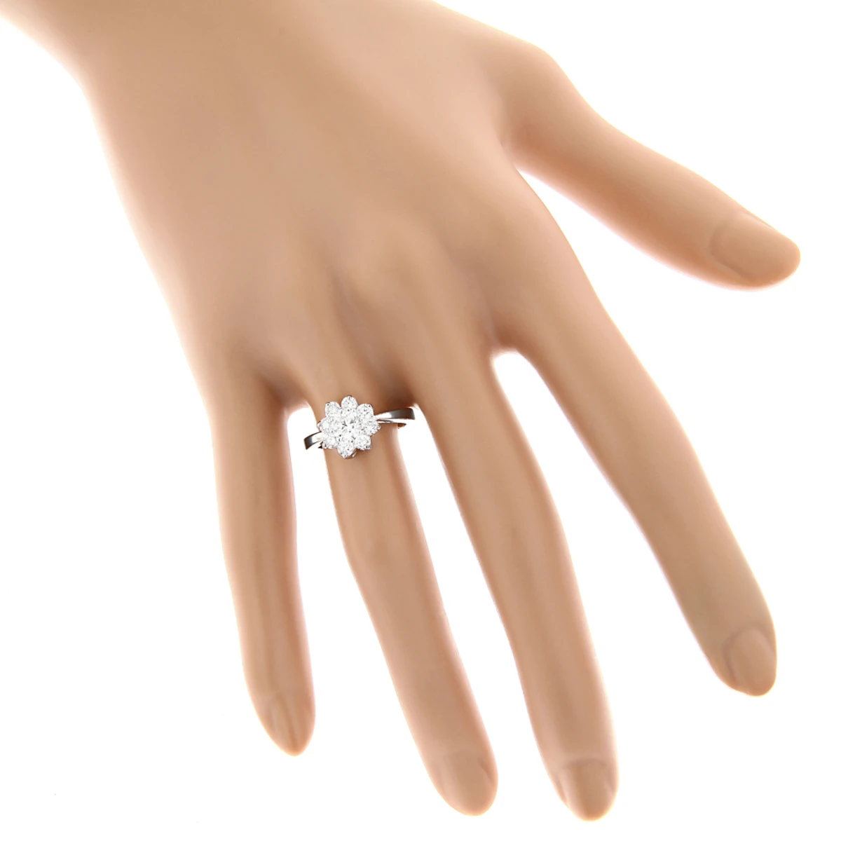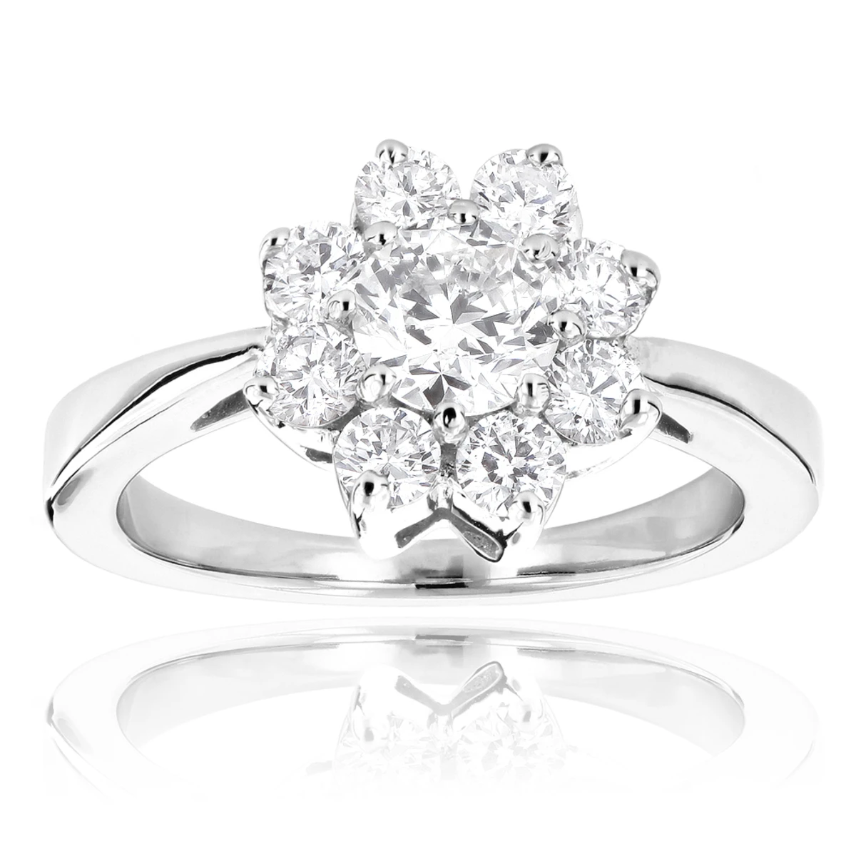 14K White Gold Diamond Flower Cluster Ring 1.2ct
