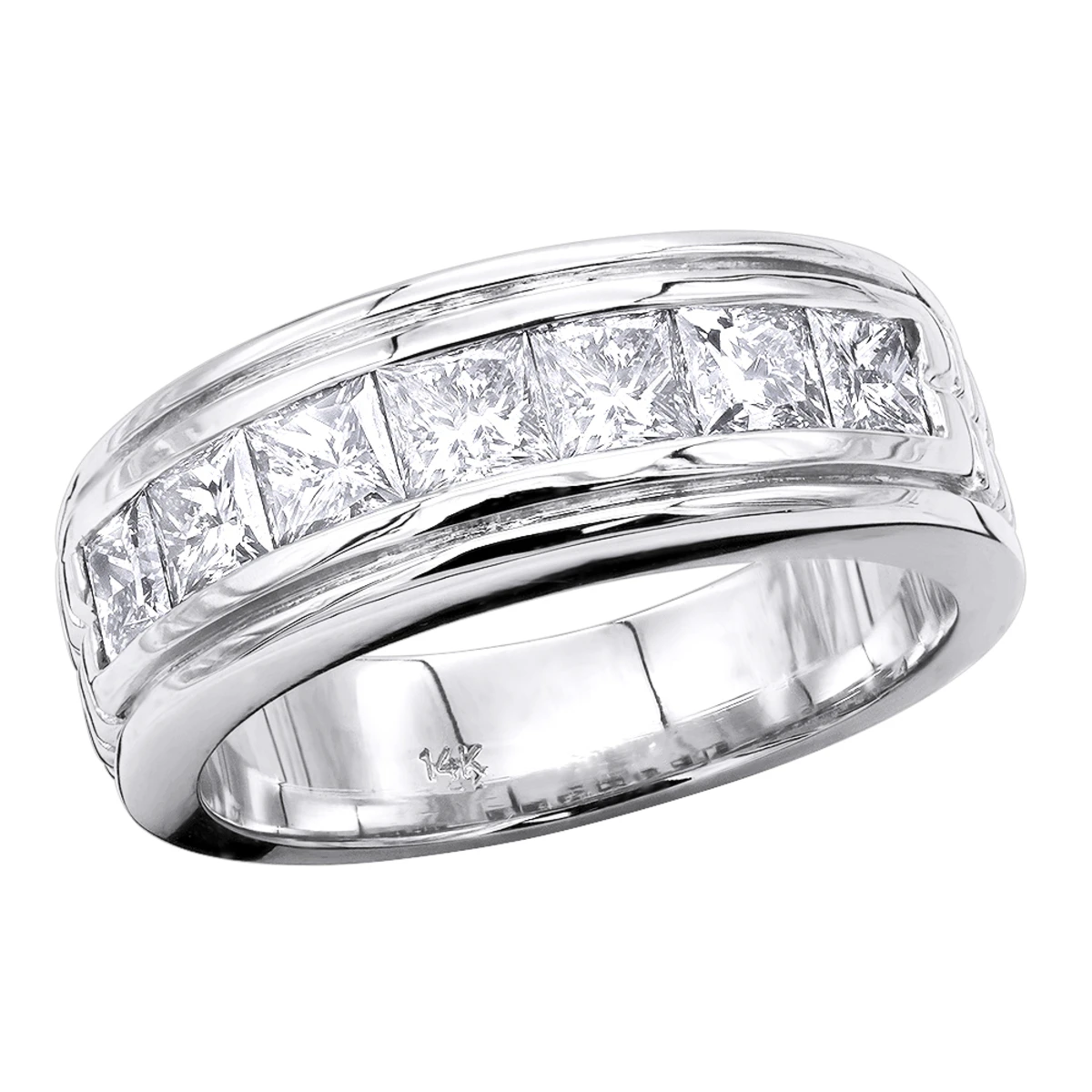 14K White Gold Diamond Men’s Wedding Ring 2.10ct