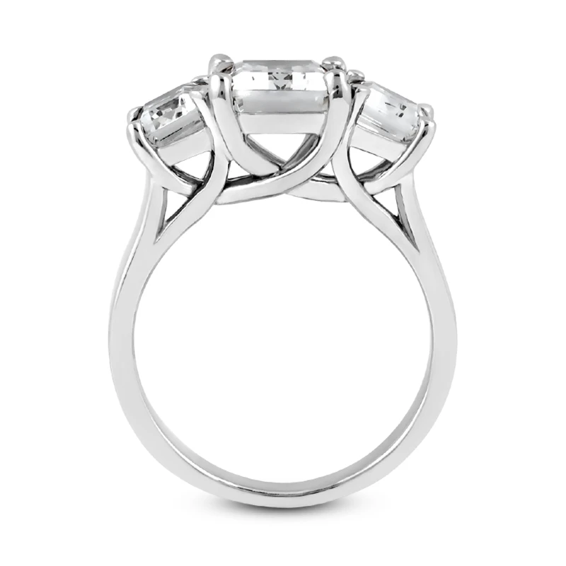 This 3 stone diamond ring weights approximately 3.9 grams and features 0.25ct emerald cut center diamond and two 0.25ct emerald cut diamonds on the sides and is available in Platinum, 18k or 14k yellow, rose or white gold and various sizes. This 3 stone diamond ring can also be custom built to your specifications with diamond color and clarity of your choice. It might accommodate from 0.25ct to 4ct center diamond and from 0.25ct to 2.50ct side diamonds (each). Call us at 212-398-3123 if you have any questions or would like us to customize it to your specifications.