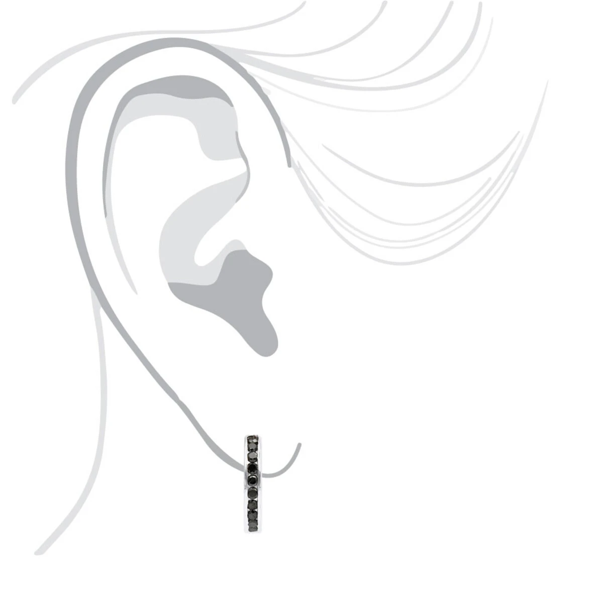 14K White Gold Hoop Huggie Black 0.6 Carat Diamond Earrings For Women