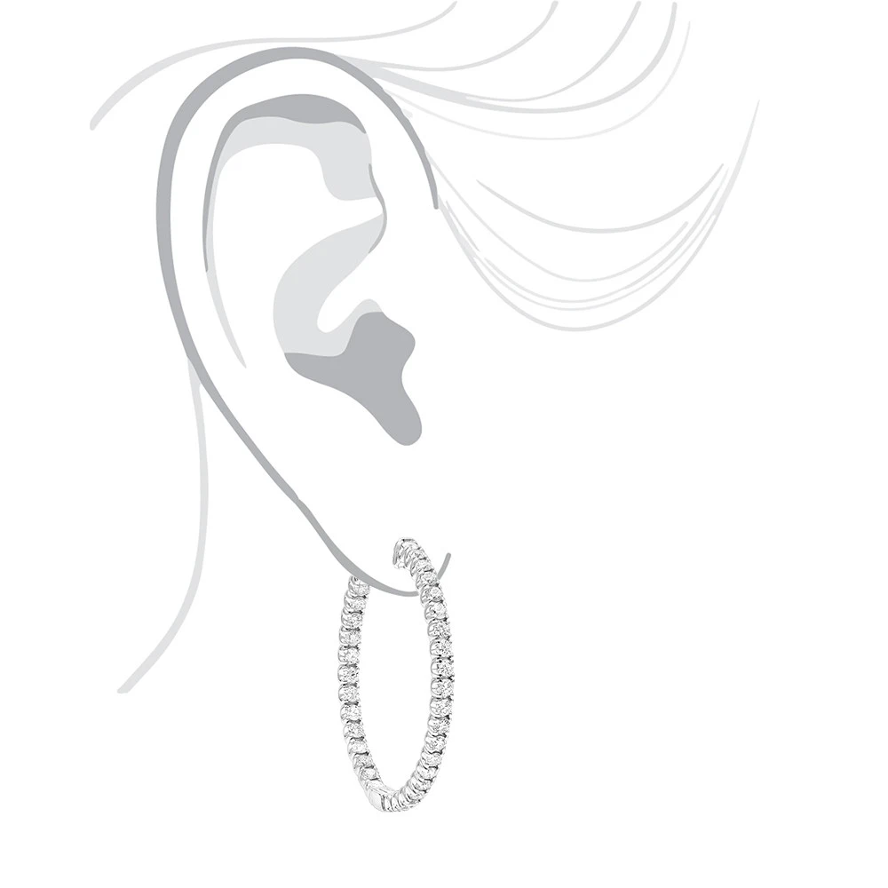 14K White Gold Inside Out 3 Carat Hoops Diamond Earrings For Women By Luxurman