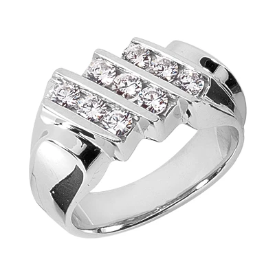 14K White Gold Men’s Diamond Ring 1.08ct 10.2mm