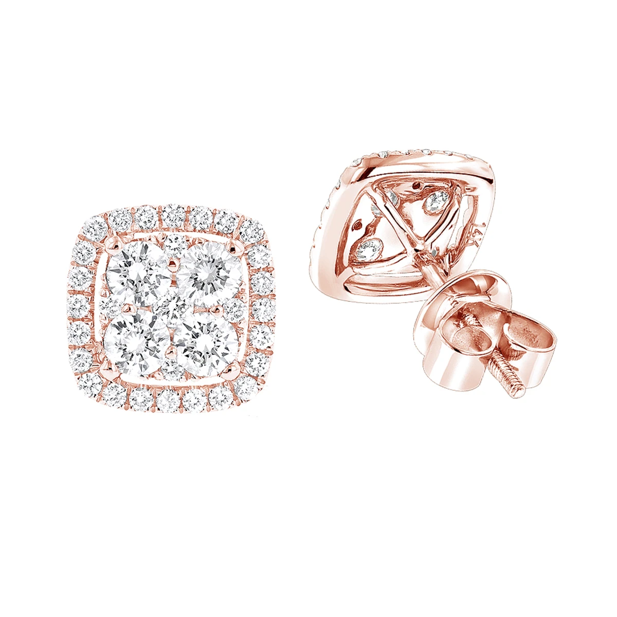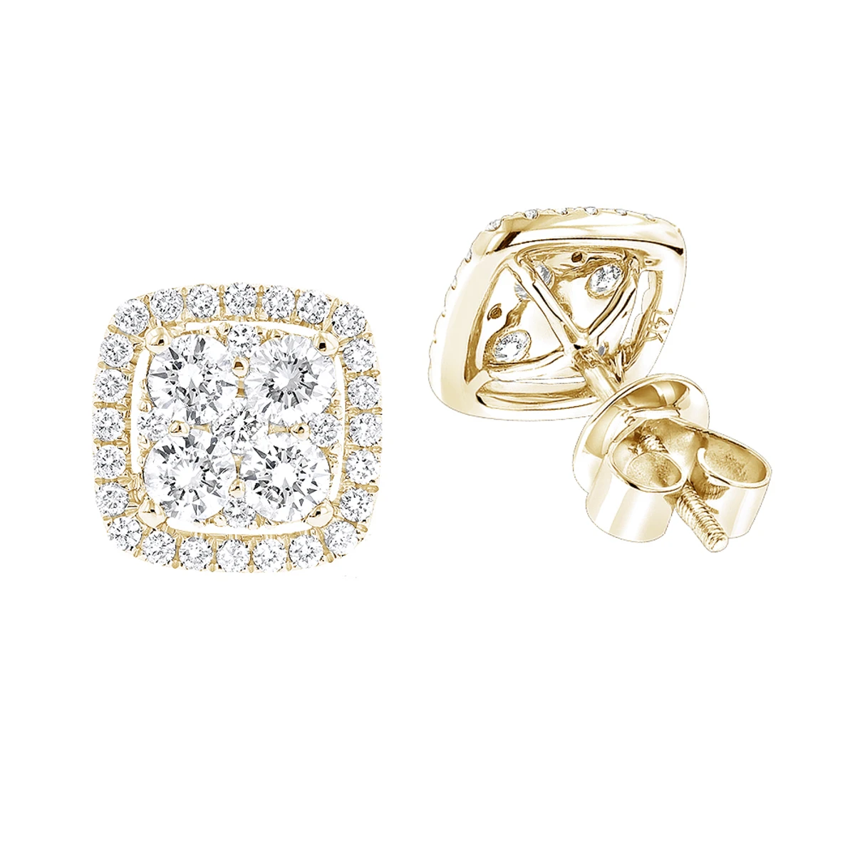 These 14K Gold Round Diamond Cluster Earrings Studs by Luxurman showcase 1.5 carats of dazzling white round diamonds masterfully pave set in 14K gold frame. These square diamond studs available in 14K white, yellow and rose gold and will make a great gift for any occasion.