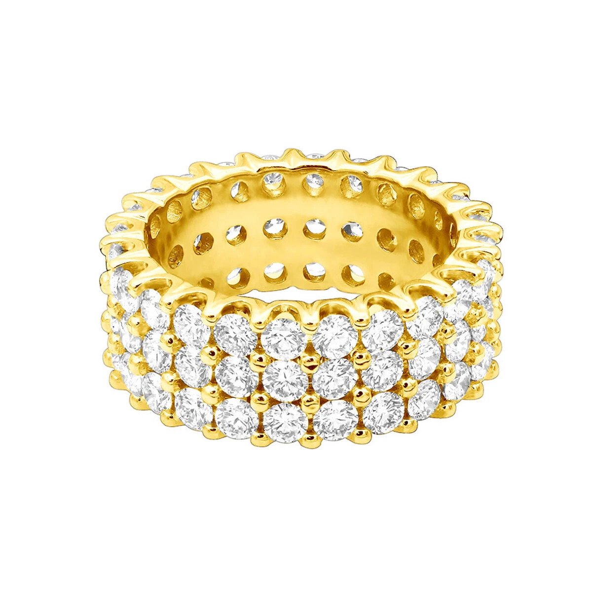 This Round Diamond Eternity Ring features 4.83 carats of round diamonds (69 diamonds). This diamond eternity Ring is available in Platinum, 18k or 14k yellow, rose, white gold, various sizes, and can be customized with any color and quality diamonds. Price and description is for a ring in 14k gold and size 6. Please note: it will take us 3-5 business days to make this ring for you so please plan accordingly. Please contact us at 212-398-3123 if your size or desired option is not listed.