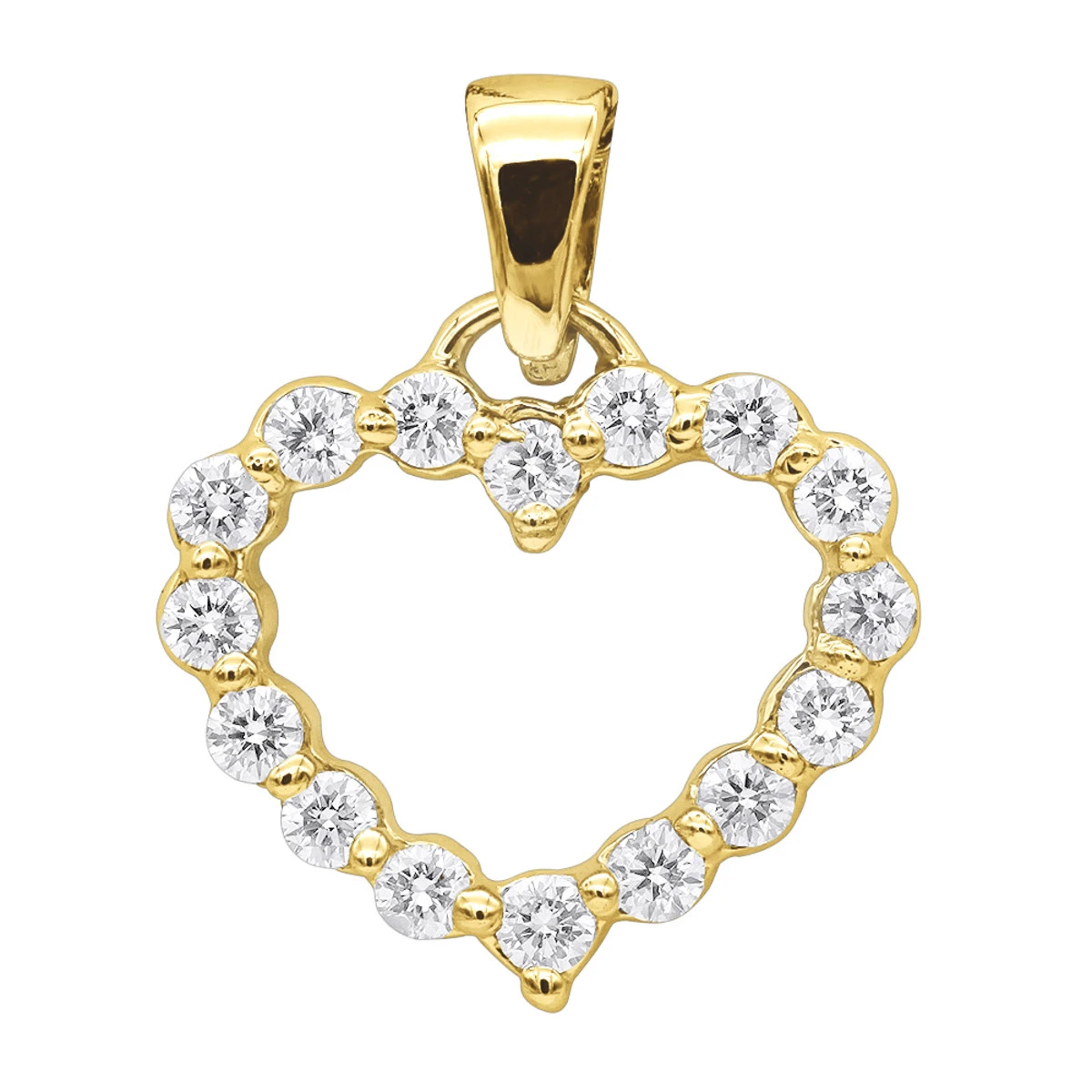 This Round Diamond Heart Necklace features 0.48 carats of round diamonds (16 diamonds). This diamond heart Necklace is available in Platinum, 18k or 14k yellow, rose, white gold, various sizes, and can be customized with any color and quality diamonds. Please note: it will take us 3-5 business days to make this Necklace for you so please plan accordingly. Please contact us at 212-398-3123 if your size or desired option is not listed. You also can personalize this piece or check we’ve already made and create your own design.