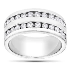 14K White Gold Round Diamond Men’s Wedding Ring 2.08ct