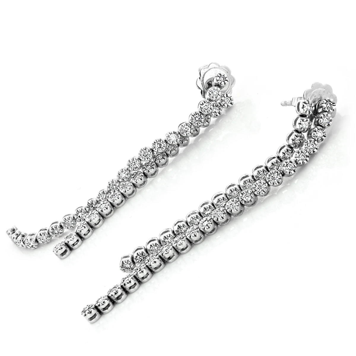 14K White Gold String Designer Diamond Earrings 0.8ct