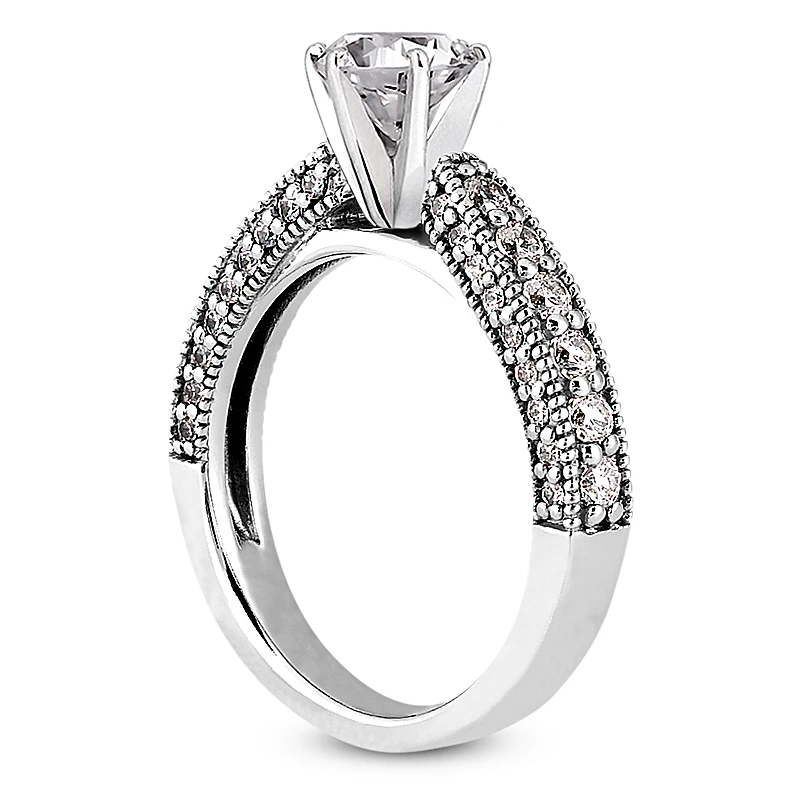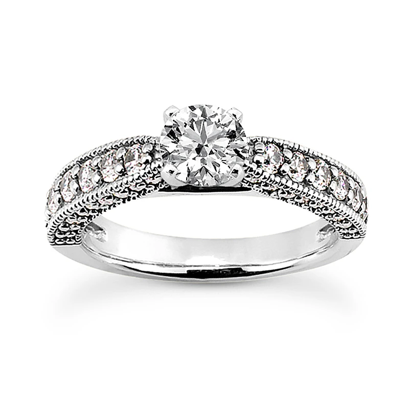 14K White Gold Unique Diamond Engagement Ring 0.88ct 3.1mm