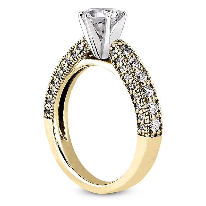 This 14K Gold Unique Diamond Engagement Ring showcases a 0.50 carat round diamond in the center and 0.38 carats of round diamonds on the sides for a total of 0.88 carat of dazzling diamonds and is available in Platinum, 18k or 14k yellow, rose, white gold, various sizes, and can be customized with any color and quality diamonds. Center diamond can be from 0.50ct to 5ct (gold weight and number of stones may vary). Please note: it will take us 3-5 business days to make this ring for you so please plan accordingly. Please contact us at 212-398-3123 if your size or desired option is not listed.
