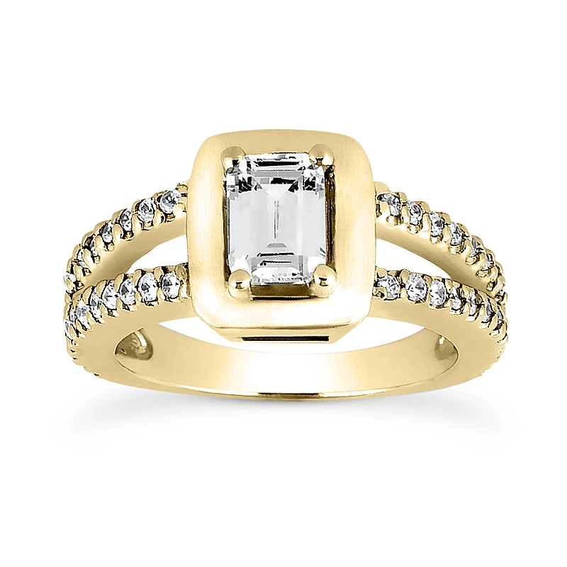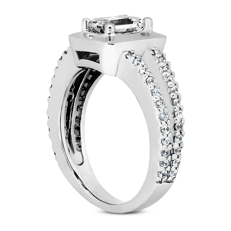 This 14K Gold Unique Diamond Engagement Ring showcases a 0.50 carat emerald cut diamond in the center and 0.52 carats of round diamonds on the sides for a total of 1.02 carat of dazzling diamonds and is available in Platinum, 18k or 14k yellow, rose, white gold, various sizes, and can be customized with any color and quality diamonds. Center diamond can be from 0.50ct to 1.50ct (gold weight and number of stones may vary). Please note: it will take us 3-5 business days to make this ring for you so please plan accordingly. Please contact us at 212-398-3123 if your size or desired option is not listed.
