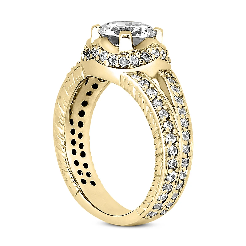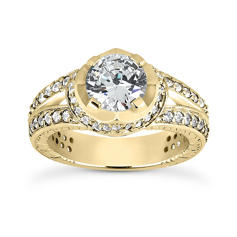 This 14K Gold Unique Diamond Engagement Ring showcases a 0.85 carat round diamond in the center and 0.78 carats of round diamonds on the sides for a total of 1.63 carat of dazzling diamonds and is available in Platinum, 18k or 14k yellow, rose, white gold, various sizes, and can be customized with any color and quality diamonds. Center diamond can be from 0.85ct to 3ct (gold weight and number of stones may vary). Please note: it will take us 3-5 business days to make this ring for you so please plan accordingly. Please contact us at 212-398-3123 if your size or desired option is not listed.