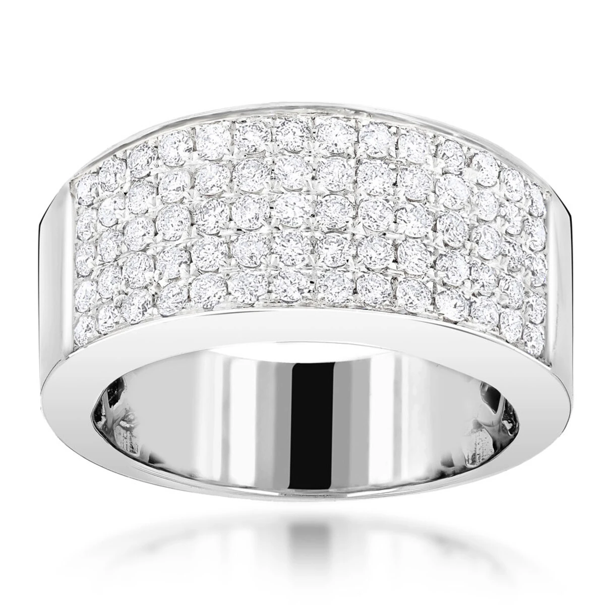 This Unisex 14K Gold Designer Diamond Wedding Band Pave Diamond Ring has a classy design and can be worn by both men and women, the band showcases 1.67 carats of dazzling round brilliant diamonds. Featuring a luxurious 5-row design and a highly polished gold finish, this iced out diamond ring is available in 10K, 14K, 18 white, yellow and rose gold as well as platinum as custom design and can also be made with yellow, black, blue, green or champaign diamonds.