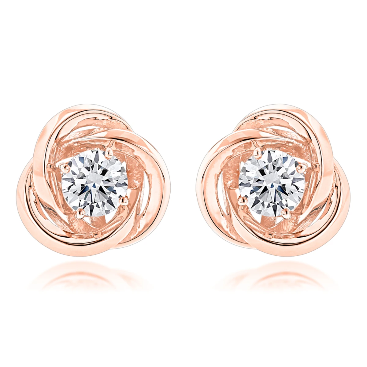 14K Yellow Gold Love Knot Diamond Earrings Solitaire Studs 1.4ct