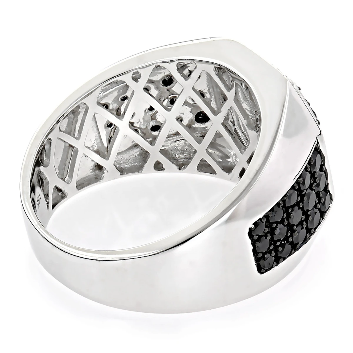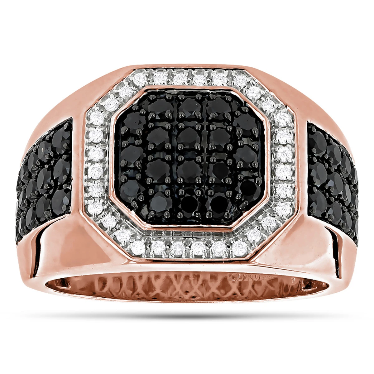 14K Yellow Gold White And Black Diamond Ring For Men Pinky Ring 1.8ct