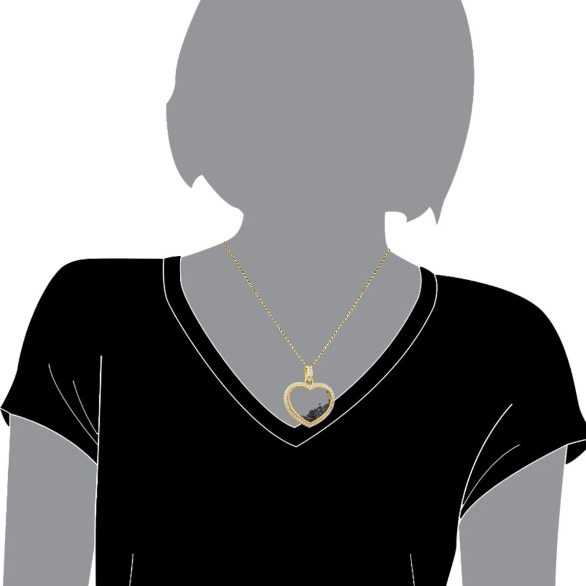14K Yellow Gold White Black Diamonds Ladies Diamond Heart Shaker Pendant 8ct Moving Stones