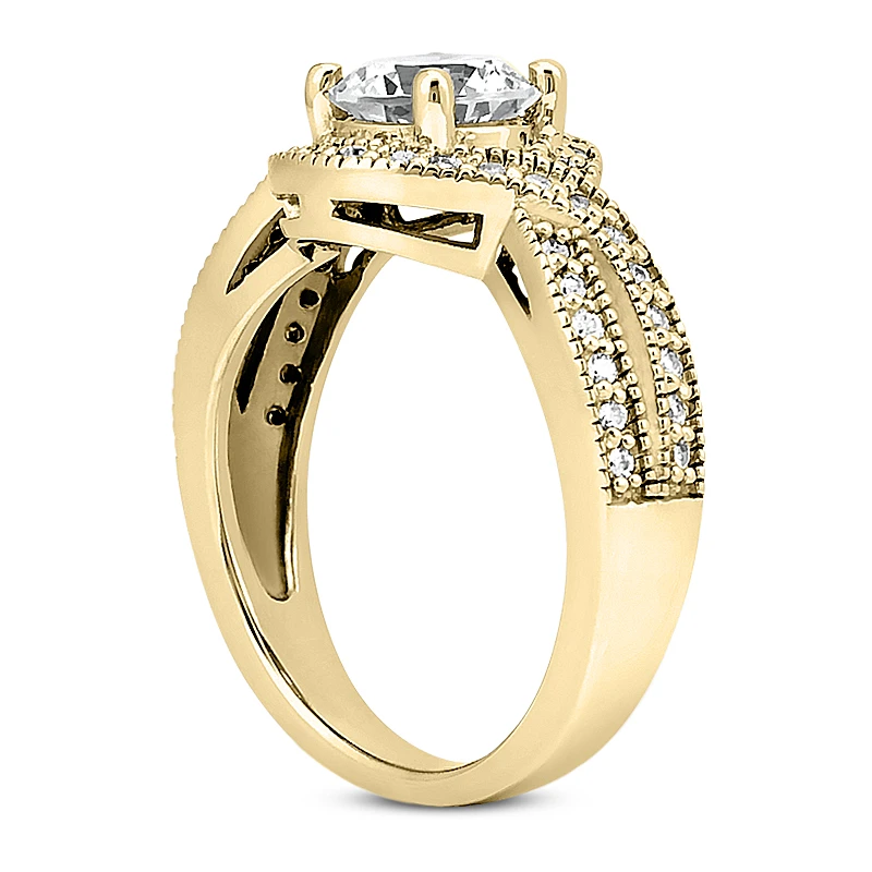 This 18K Gold Diamond Engagement Ring showcases a 0.75 carat round diamond in the center and 0.32 carats of round diamonds on the sides for a total of 1.07 carats of dazzling diamonds and is available in Platinum, 18k or 14k yellow, rose, white gold, various sizes, and can be customized with any color and quality diamonds. Center diamond can be from 0.50ct to 2ct (gold weight and number of stones may vary). Please note: it will take us 3-5 business days to make this ring for you so please plan accordingly. Please contact us at 212-398-3123 if your size or desired option is not listed.