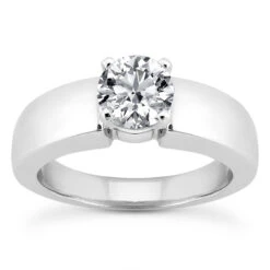 18K White Gold Round Diamond Engagement Ring 0.75ct 4.65mm Wide