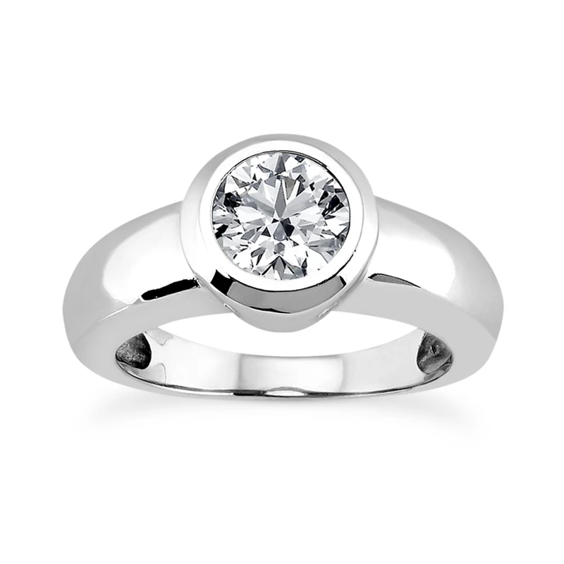18K White Gold Round Diamond Engagement Ring Bezel Set 0.75ct 4.40mm