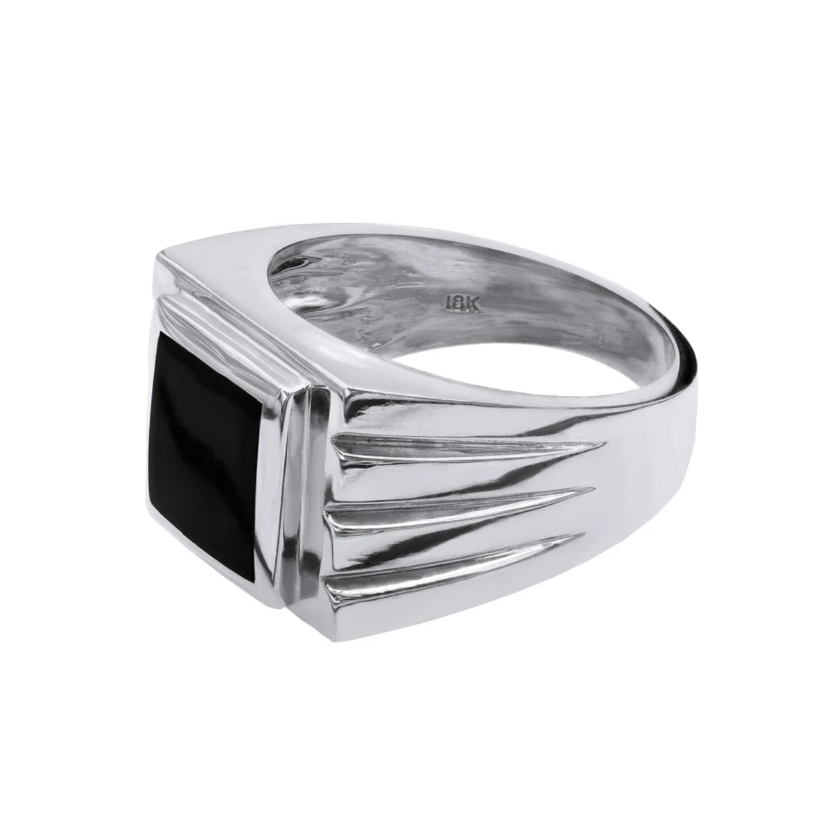 This 18K Gold Men’s Black Onyx Ring 14.4mm is the perfect accessory for the modern man. Crafted from 18K gold, this ring features a black onyx gemstone set in a bezel setting. The black onyx gemstone is a symbol of strength and protection, making this ring the perfect gift for the man in your life. The gold is available in white, yellow, and rose, allowing you to choose the perfect color to match your style.The ring is 14.4mm wide, making it a bold statement piece that will stand out from the crowd. The bezel setting ensures that the gemstone is securely held in place, so you can wear it with confidence. The 18K gold is of the highest quality, ensuring that this ring will last for years to come.This 18K Gold Men’s Black Onyx Ring 14.4mm is the perfect way to show your love and appreciation for the man in your life. Whether you are looking for a gift for a special occasion or just want to show him how much you care, this ring is sure to make him feel special. With its bold design and timeless style, this ring will be a treasured piece for years to come.