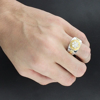 2 Tone 14K White Gold Rolex Style Men’s Diamond Ring 1ct Gold