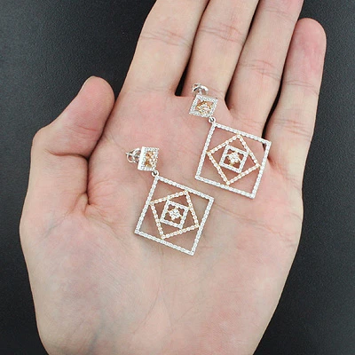 Featured Brilliant Buy! This 18K 2 Tone White and Rose Gold or White and Yellow Gold Fashion Earrings have 3.05 carats of sparkling round cut diamonds. Round diamonds are set all the way around each square of this remarkable design. Display your good taste with this beautiful set.