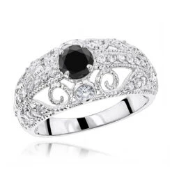 Be the first to review “Antique White Black Diamond Engagement Ring With Filigree 1.2ct 14K White Gold” Cancel reply