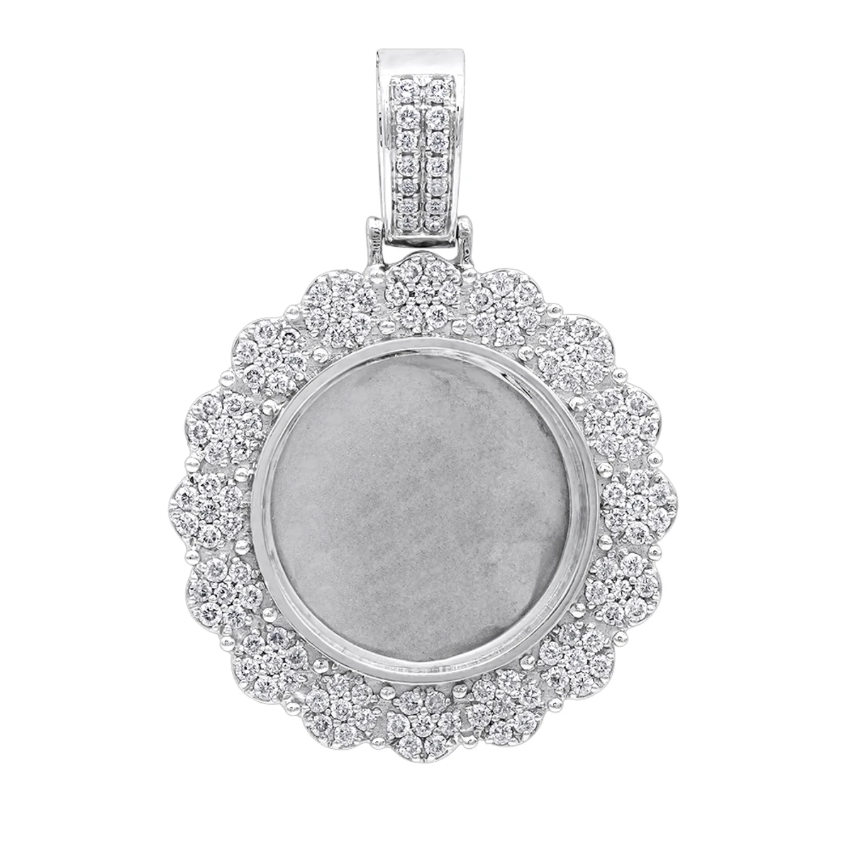 Customizable Medallion Diamond Picture Pendant 1.52 Carats 14K White Gold