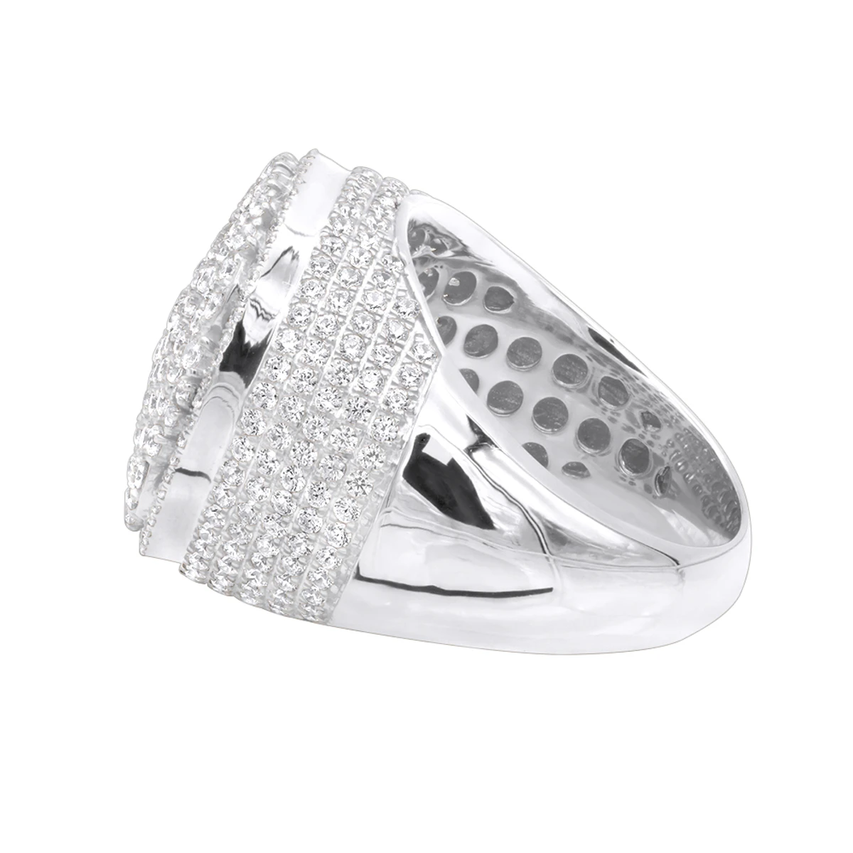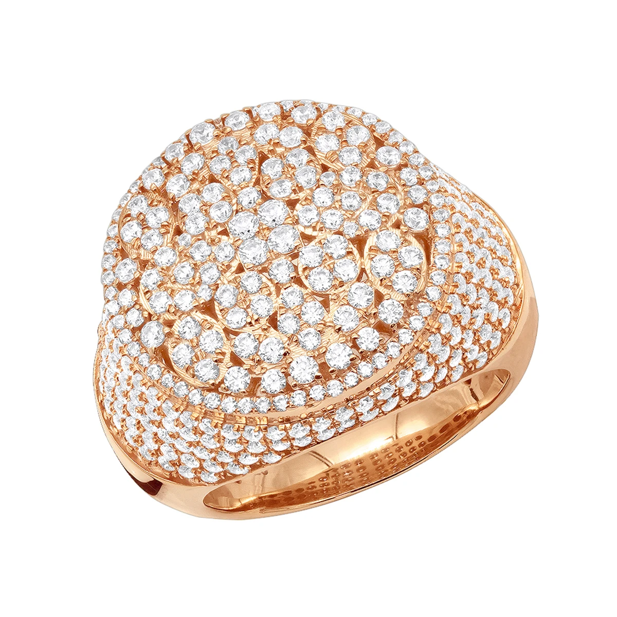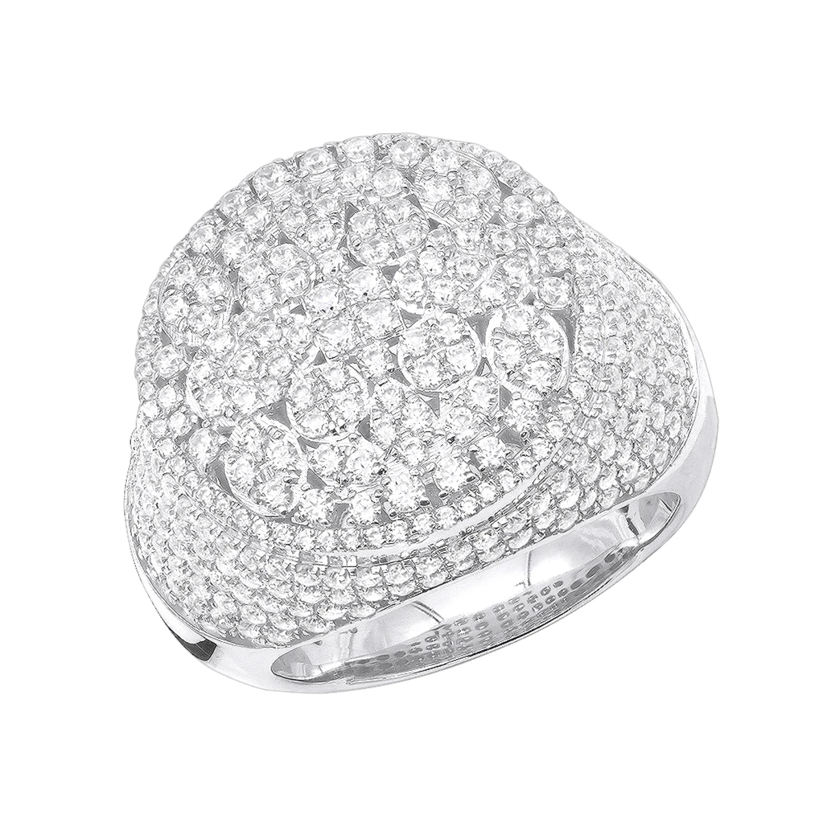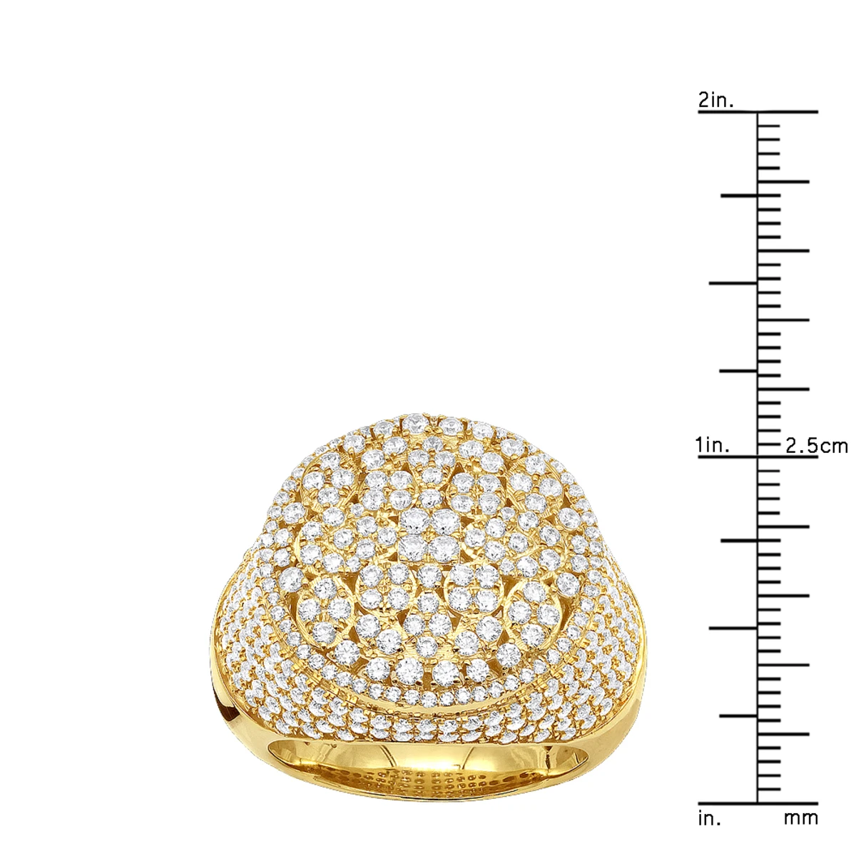 From our men’s statement rings and pinky rings collections this breathtaking One of a kind designer Men’s Diamond Ring in 10K Gold with 4 Carat of sparkling diamonds by Luxurman showcases a unique design of diamonds stylishly scattered on the voluminous gold base with 5 sparkling rows of diamonds set around the dazzling top part. Taking inspiration from mother nature, the golden incrusted clusters of the upper part resemble a white lily surrendered by lily pads, giving this designer diamond item spiritual meaning. Water lily symbolizes pleasure and peace, and this fabulous ring can become a perfect talisman of wellness. The ring weighs approximately 13 grams and features impressive 4 carats of genuine white round diamonds. This stunning men’s diamond ring is quite large being about 9/11in. (21mm) wide also makes a perfect pinky ring and is available in 10k yellow gold, white gold and rose gold.