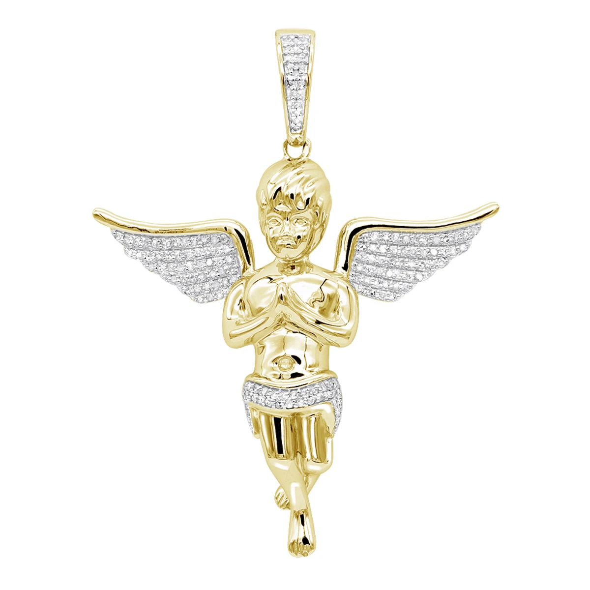 This beautiful Solid 10K Gold Diamond Baby Angel Pendant for Men by Luxurman weights approximately 13 grams and showcases amazing 3D design of an Angel done in solid 10k gold and decorated with 0.5 carat of sparkling genuine diamonds masterfully pave set in highly polished gold frame. Featuring a gorgeous angel design this men’s diamond pendant is available in 10K yellow, white a rose gold. You also can personalize this piece or check we’ve already made and create your own design.