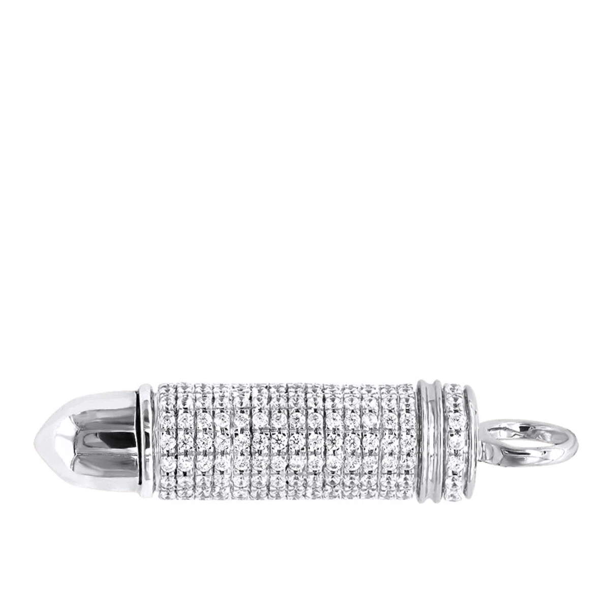 This cool diamond bullet pendant by LUXURMAN is crafted in highly polished precious 10K gold and is accentuated all around with 3/4 carat sparkling genuine diamonds, featuring fully iced out style. Ths unique diamond pendant is 1 1/4in (32mm) long with bail and 5/16in (7mm) wide, made with great detail of a full bullet (not a half pendant) with a complete design and diamonds going all around it, and is available in Yellow, White and Rose Gold. The pendant is unique with special individual meaning for every person, it will make a perfect gift for your loved ones! Combine it with one of our gold chains to make it into a unique necklace. You also can personalize this piece or check we’ve already made and create your own design.