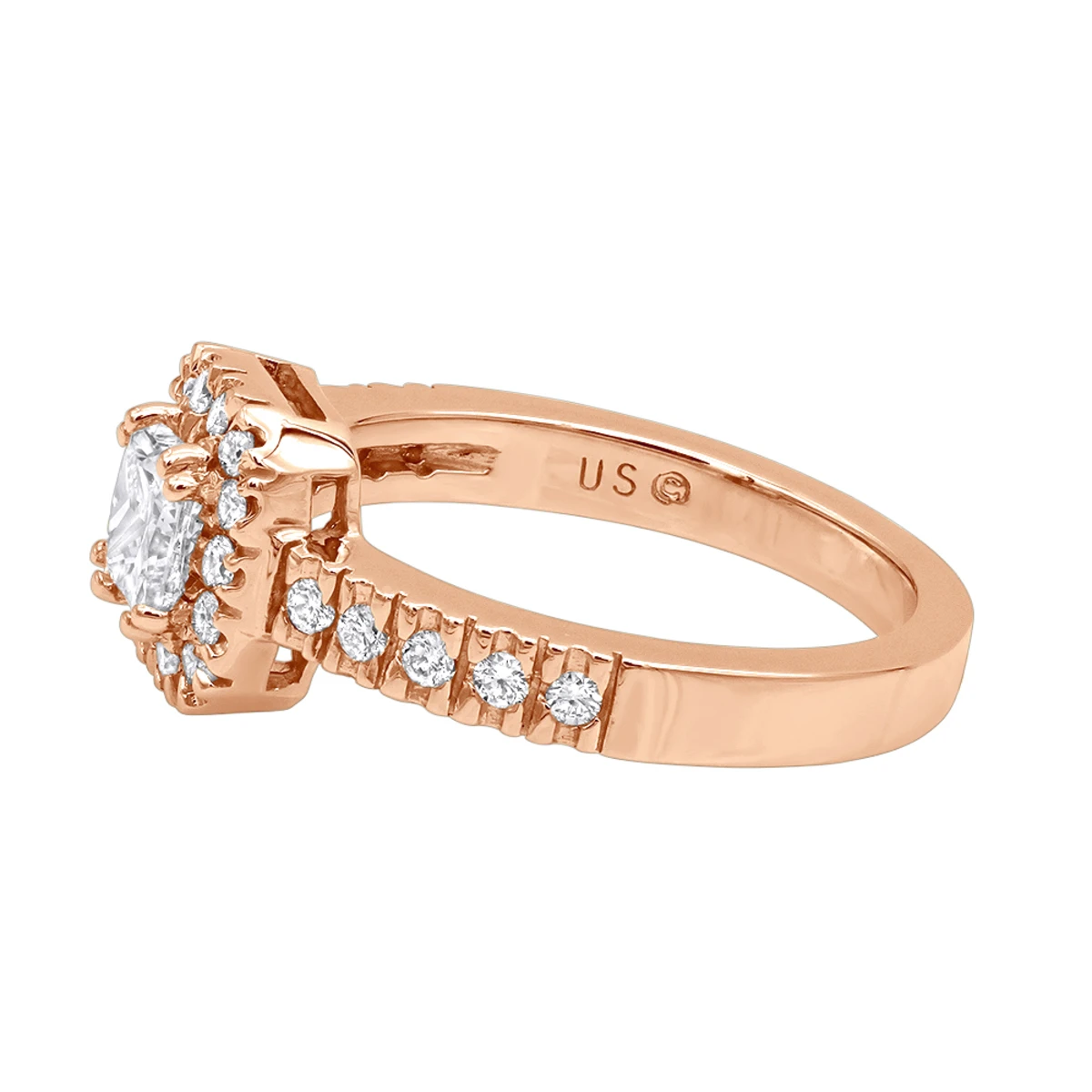 This Halo 18K Gold Princess Cut Diamond Engagement Ring showcases a 0.75 carat princess cut diamond in the center and 0.36 carats of round diamonds in halo around the center diamond as well as on the sides of the ring for a total of 1.11 carats of dazzling diamonds. This engagement ring is available in 18k white gold, yellow gold and rose gold. We also specify in custom orders so we can customize this ring in any metal (for example in Platinum) and with any size, color or shape diamonds. Please note: it will take us 3-5 business days to make this ring for you so please plan accordingly. Please contact us at 212-398-3123 if your size or desired option is not listed.