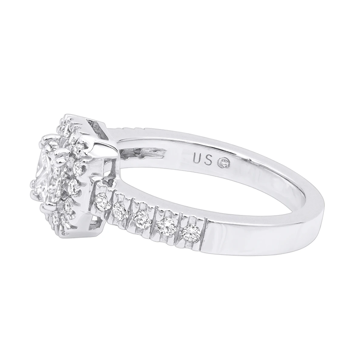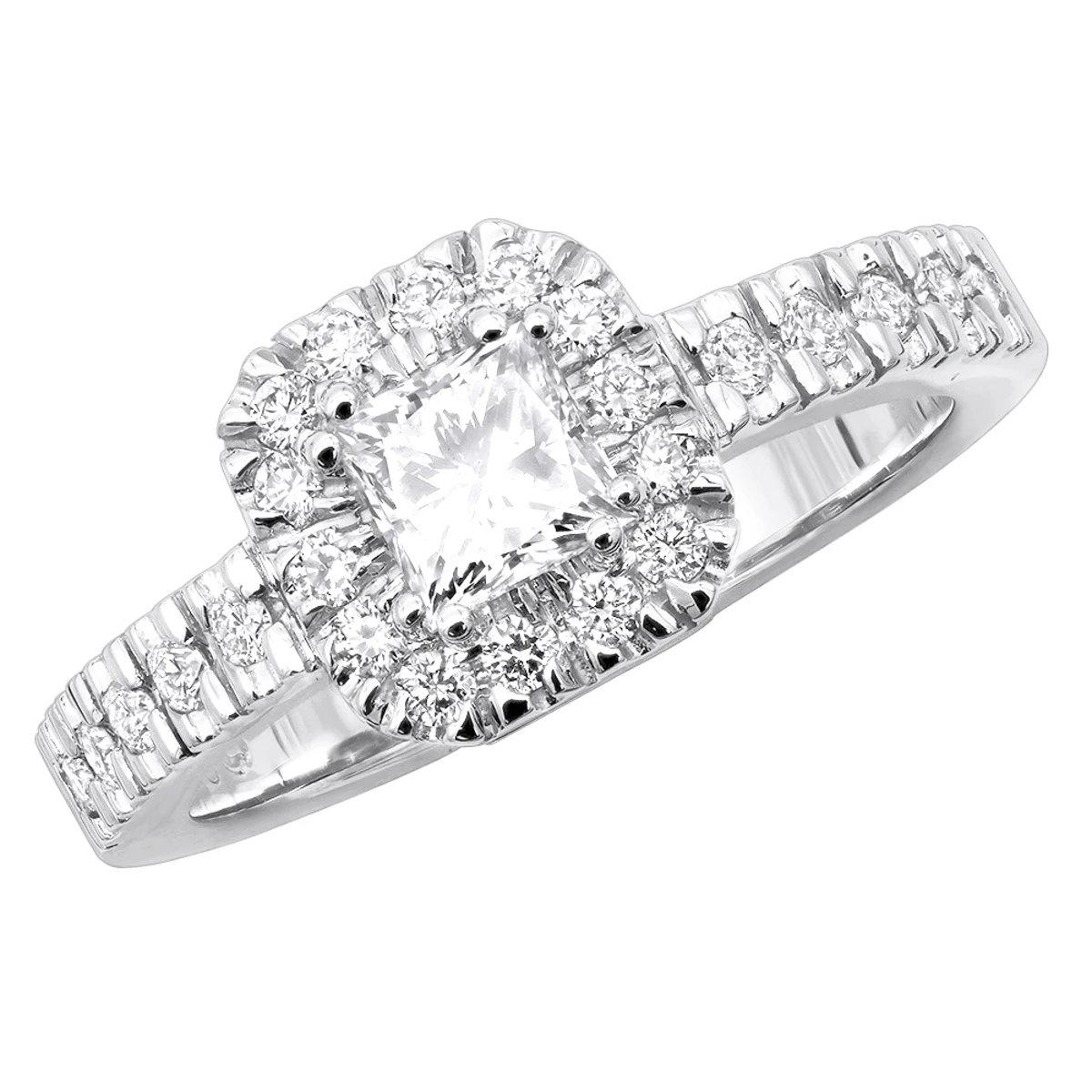 Halo 18K White Gold Princess Cut Diamond Engagement Ring 1.11ct 3/8in. (9.5mm)