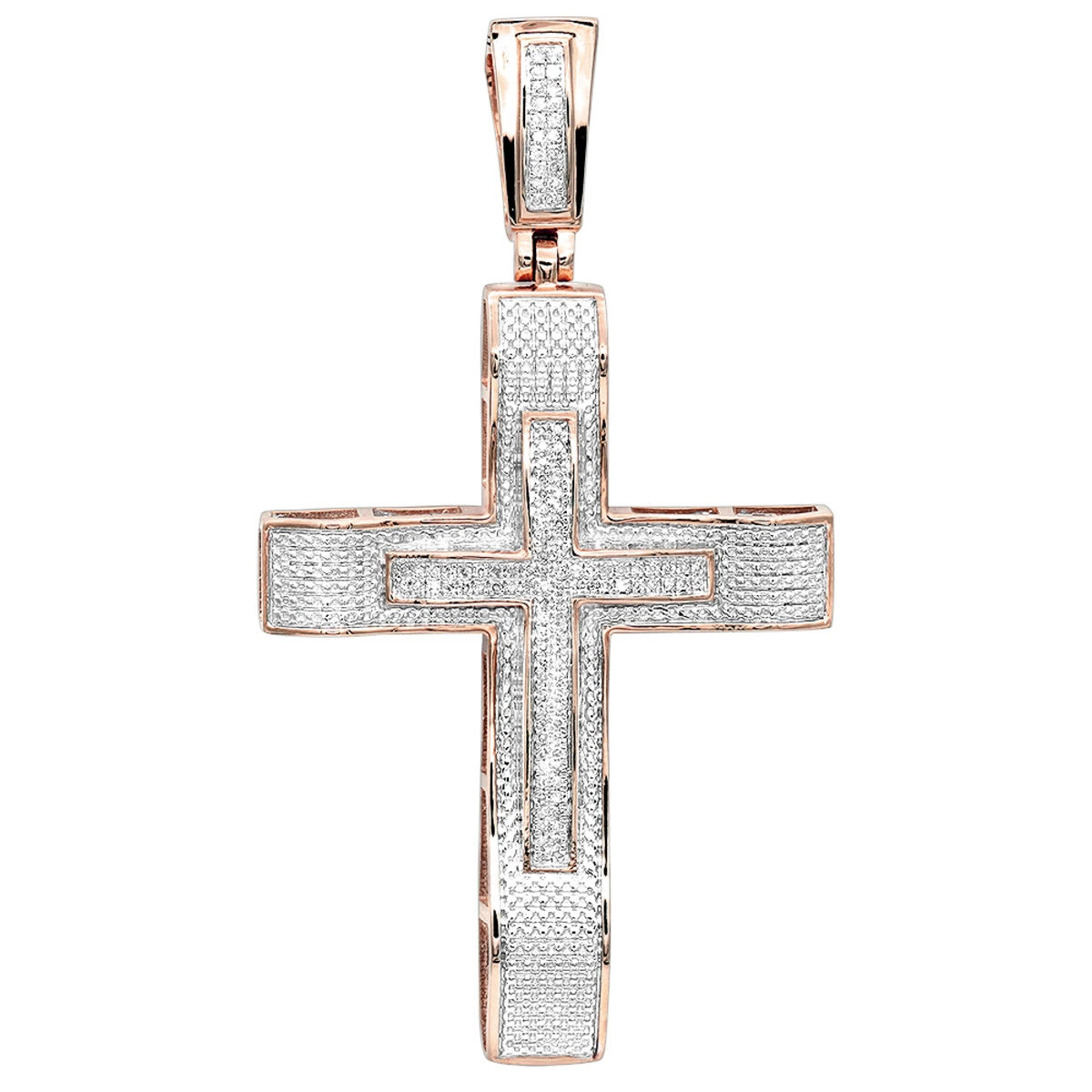 Diamond Hip Hop Jewelry collection: this Large Diamond Double Cross Pendant for Men features an oversized design at 2 3/4 inches (71mm) long, made from solid 10k gold decorated with 0.4 carats of genuine diamonds and features a double cross design with smaller cross on top of larger one; this men’s diamond cross pendant is made to really stand out and will make a great present for somebody who loves hip hop and real hip hop jewelry, available in 10k yellow gold, white gold and rose gold. You also can personalize this piece or check we’ve already made and create your own design.