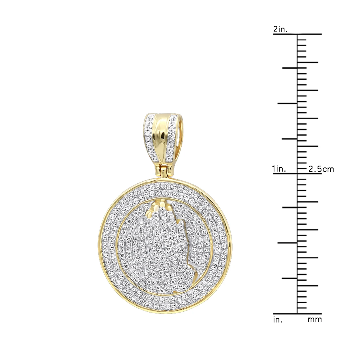 Hip Hop Praying Hands Diamond Pendant For Men 14K Yellow Gold Medallion