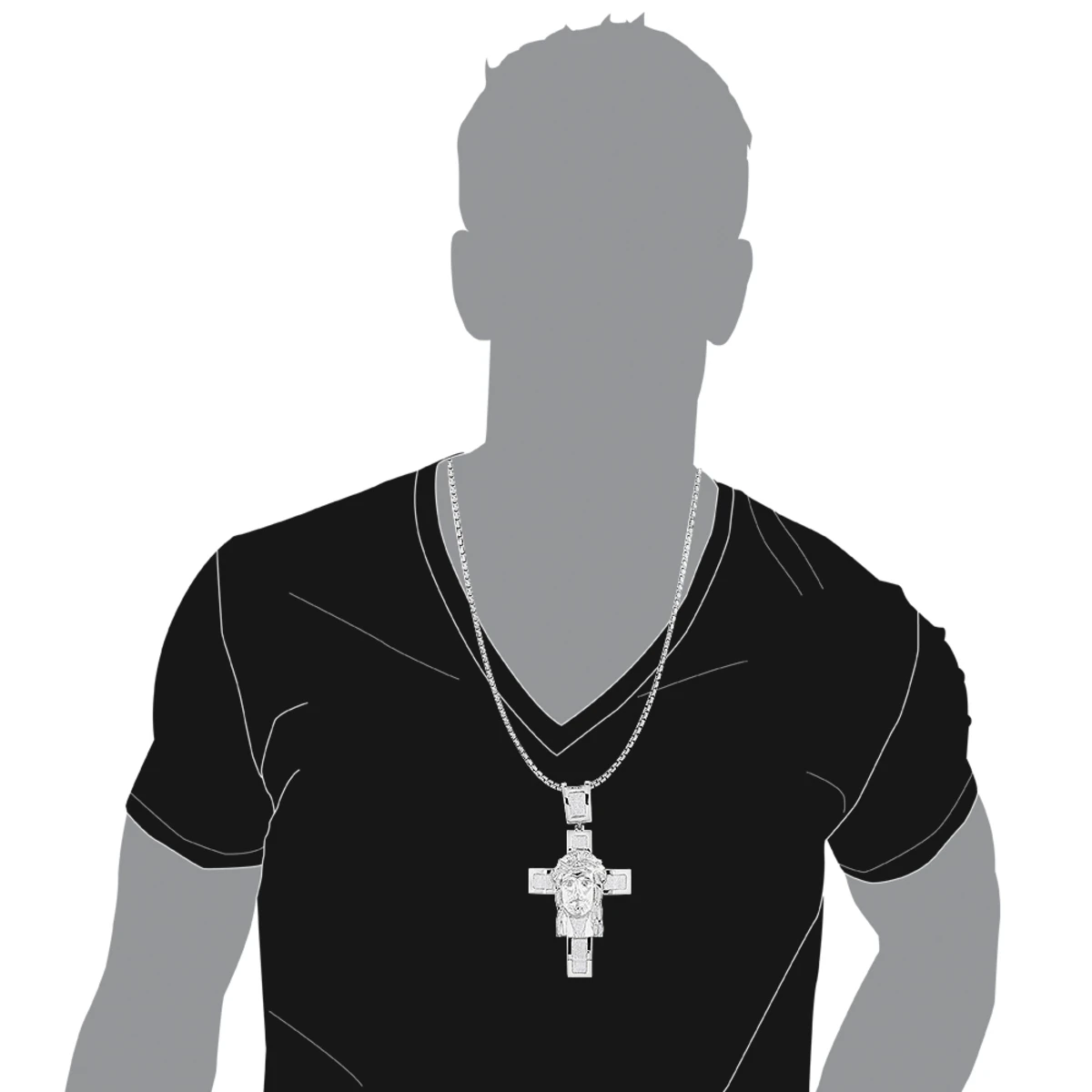 Hip Hop Sterling Silver Diamond Jesus Face Cross Pendant 1.54ct