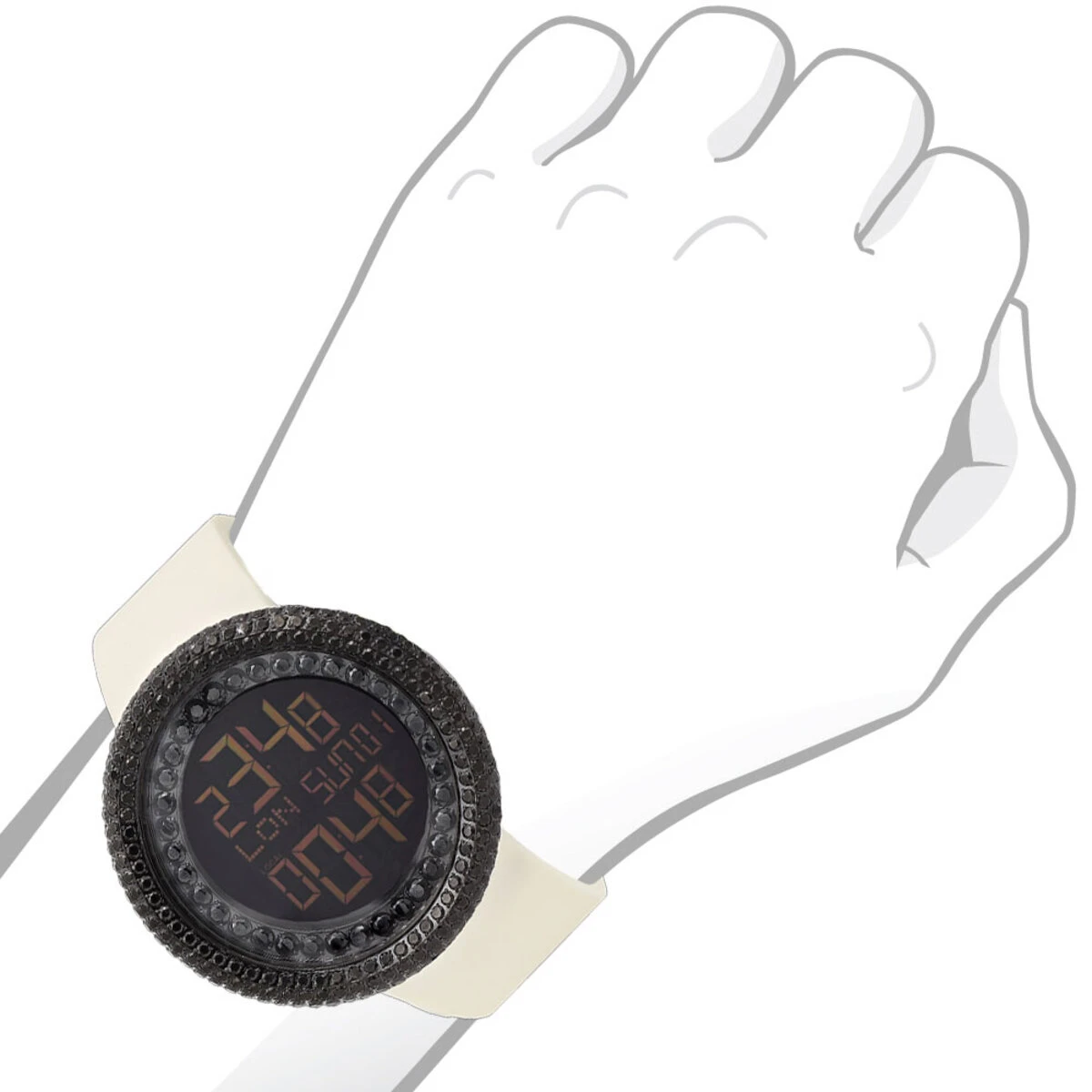 JoJino Black Simulated Diamond Watch For Men Large Digital Watch Rubber Band
