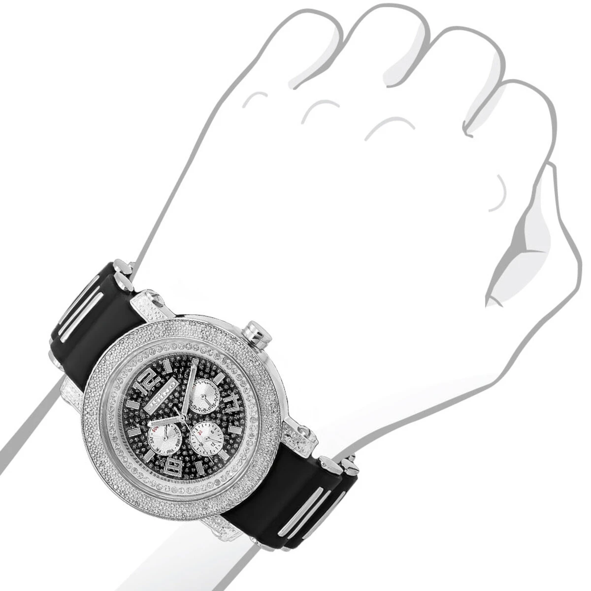 Jojino Iced Out Men’s Diamond Watch Black Rubber Band Chronograph 0.25ct