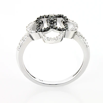 Ladies Flower Ring With Black And White Diamonds 0.31ct 14K White Gold