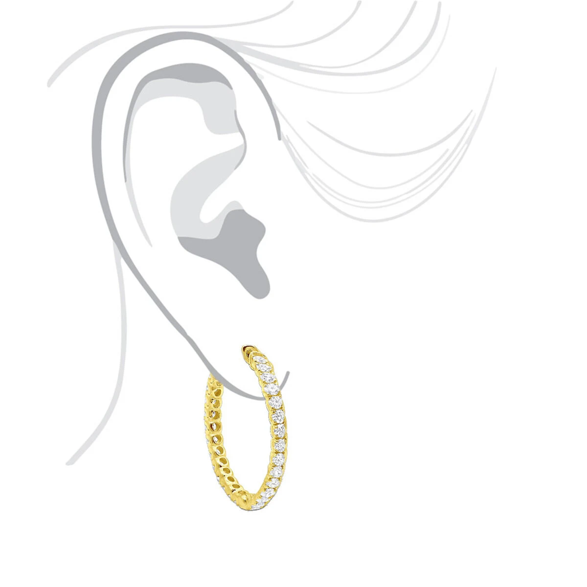 Large Diamond Hoop Earrings Inside Out 2.00ct 14K Yellow Gold