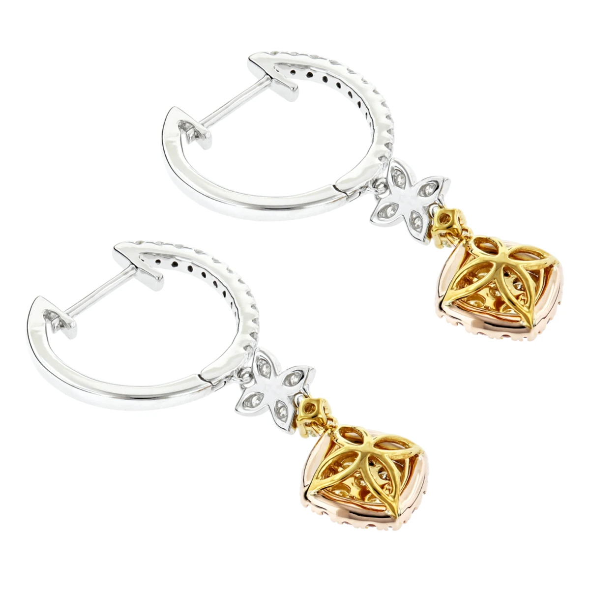 Luxurman White Yellow Pink Diamond Drop Earrings For Women 1.4ct 14K Gold