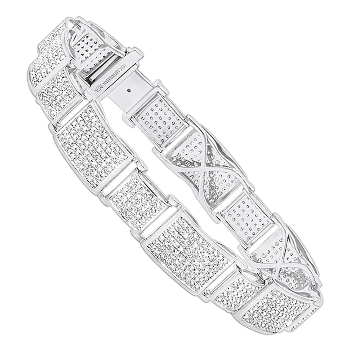 Men’s 10K White Gold Pave Diamond Bracelet 4.60ct